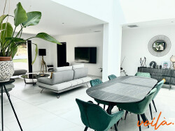 Réf :" PALMSPRINGS" Votre agence immobilière Voilà vous propose une villa à l'architecture contemporaine. Située aux portes de Carcassonne, à quelques pas du Lac de la Cavayère et des sentiers de randonnées , elle développe une surface de 205 m2 au total, le tout au coeur d'un terrain de 1015m2. Grâce à sa conception bien pensée, toutes les pièces de vie sont tournées vers l'extérieur. Cette maison neuve offre de beaux volumes composés d'un majestueux hall d'entrée totalement vitré, d'un séjour, d'une cuisine équipée ouverte , d'une salle-à-manger , sans oublier le patio intérieur qui entièrement vitré et permettant d'accéder à la grande terrasse ; rend un effet dedans / dehors exceptionnel. Le coin nuit est composé de 3 chambres dont une suite comprenant salle d'eau + baignoire et dressing aménagé ; les deux autres suites disposent chacune d'un salle d'eau et de placards de rangement. Deux toilettes et buanderie complètent le tout. Vous pourrez également profiter de deux grands garages de 40 m2 chacun avec portes motorisées, deux abris voitures en dur et une cave à vin secrète. Dans le jardin clos, une piscine de 8 x 4 au sel avec alarme confère à l'ensemble un air de vacances. Les plus : climatisation gainable individuelle, volets roulants électriques centralisés, double vitrage en aluminium, alarme individuelle, ballon thermodynamique, mitigeur de cuisine connecté pour de l'eau filtré plate ou pétillante, fibre, portail d'entrée motorisé. Possibilité de vente meublé. Village toutes commodités (supermarché, docteur, pharmacie, école..). VUE EXCEPTIONNELLE A COUPER LE SOUFFLE surplombant le village, cette villa offre un cadre de vie agréable dans un quartier recherché. Produit UNIQUE! Les informations sur les risques auxquels ce bien est exposé sont disponibles sur le site Géorisques : www.georisques.gouv.fr Le prix indiqué comprend les honoraires de négociation, ces honoraires sont à la charge exclusive du vendeur. Camille Maurette, Directrice, immatriculée au RSAC de Carcassonne sous le numéro 90464305300021 - carte professionnelle n° CPI11012021000000008.