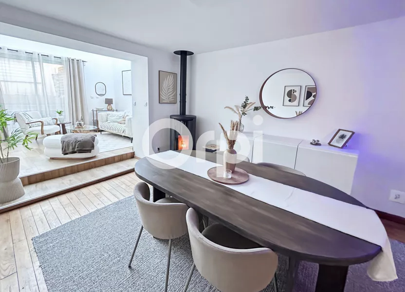 BEUVREQUEN, semi-individuelle de 1972 'dans son jus' offrant 91 m2 habitables avec vie de plain-pied, un garage et un grand jardin. 4 chambres envisageables, potentiel certain. Mode de chauffage : poêle à bois - Assainissement raccordé au tout à l'égoût .