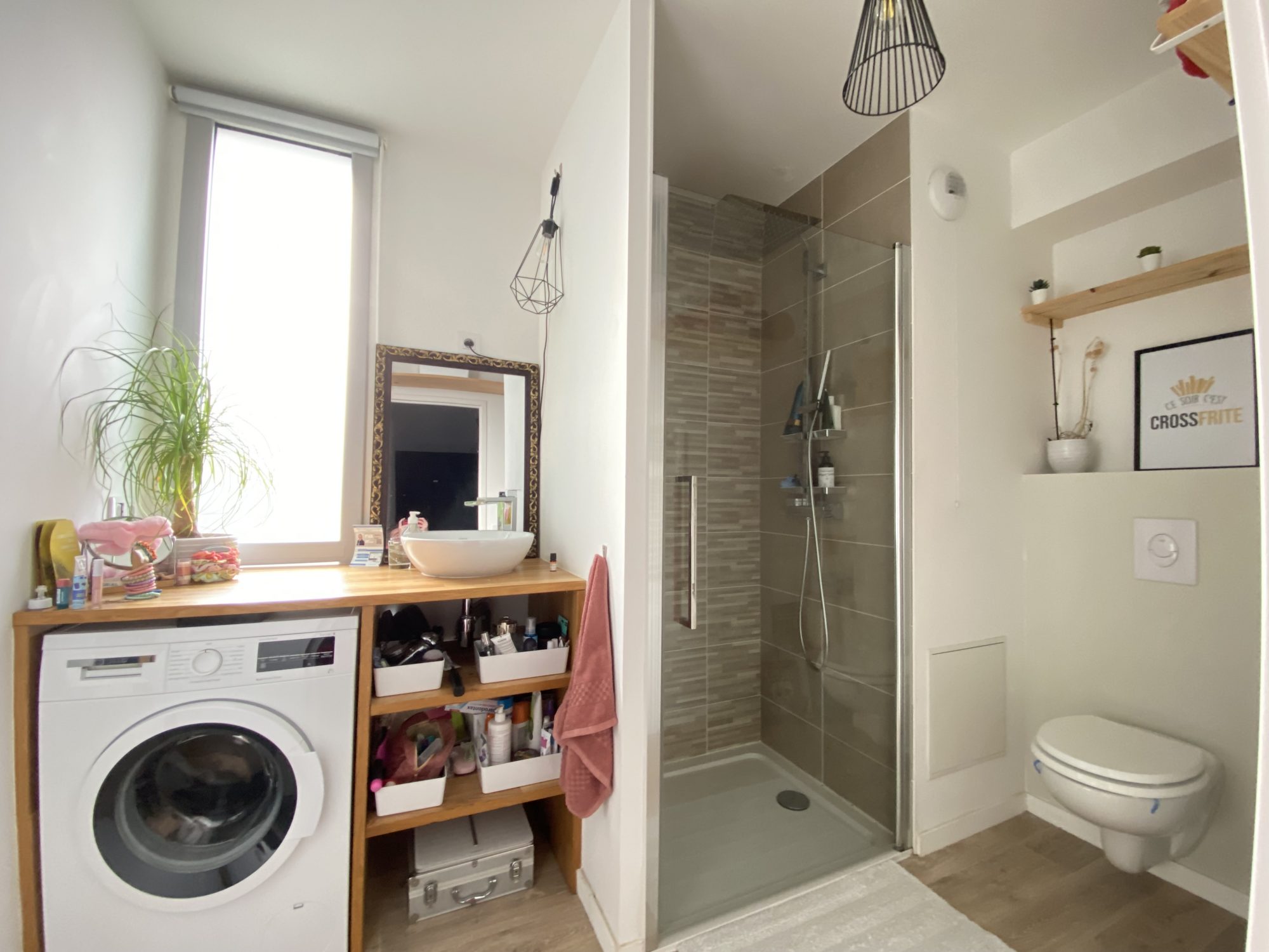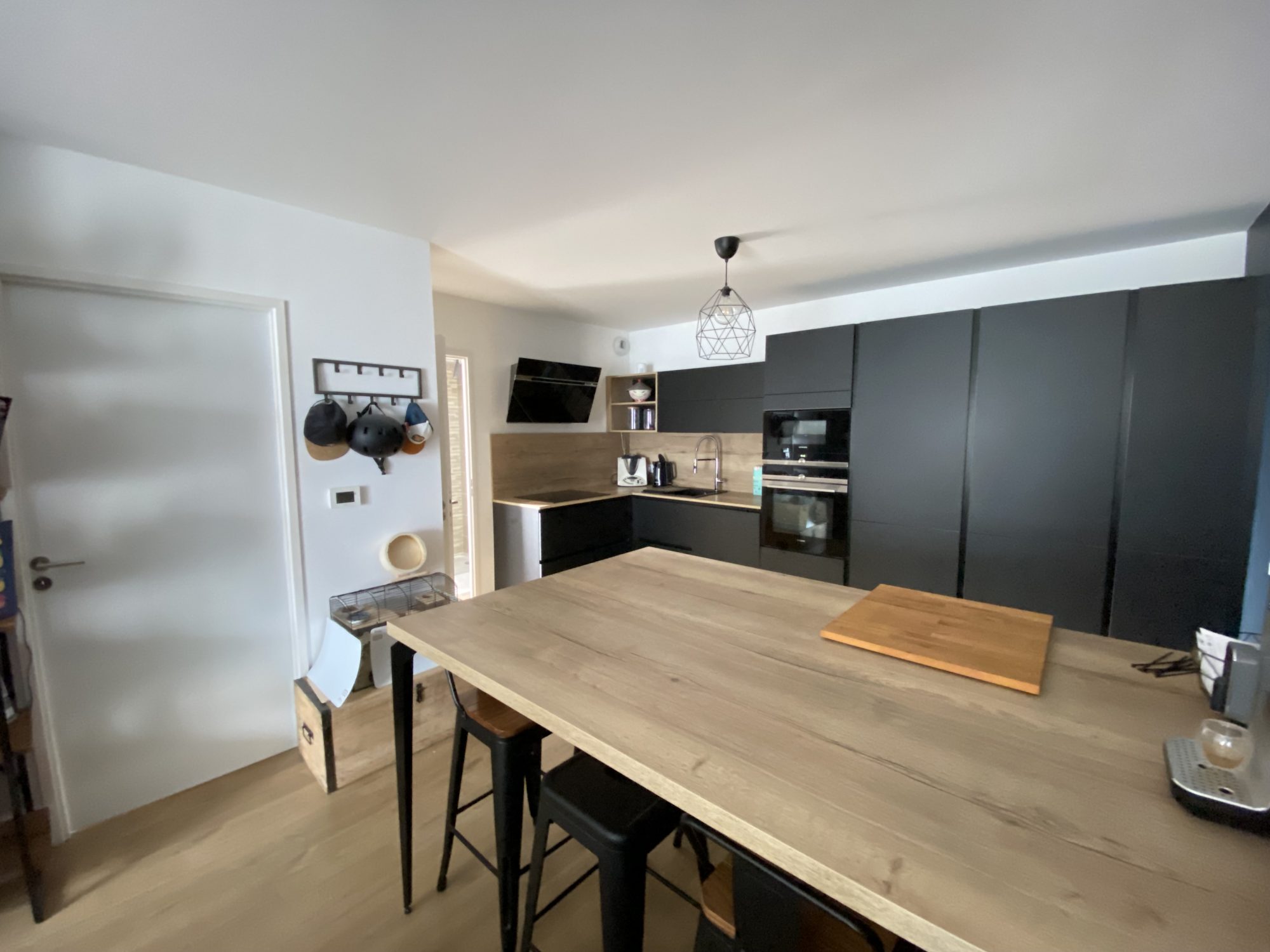 Cet appartement comprend : - Entrée et dégagement - Un séjour - Une spacieuse cuisine récente aménagée et équipée - Une grande chambre - Une salle de bains rénovée avec wc - une petite pièce de rangement