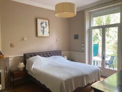 - Au rez-de-jardin : Garage, cave, buanderie, deux chambres, salle d'eau, WC. - Au rez-de-chaussée surélevé : Superbe salon avec cheminée (vitraux), très grande salle à manger (vitraux), grande chambre avec salle de bains attenante et accès terrasse, cuisine aménagée et équipée ouvrant sur terrasse, WC, dégagement. - Etage : Couloir desservant trois chambres, salle de bains, WC, - Extérieur : Jardinet devant la maison, jardin à l'arrière, terrasse.