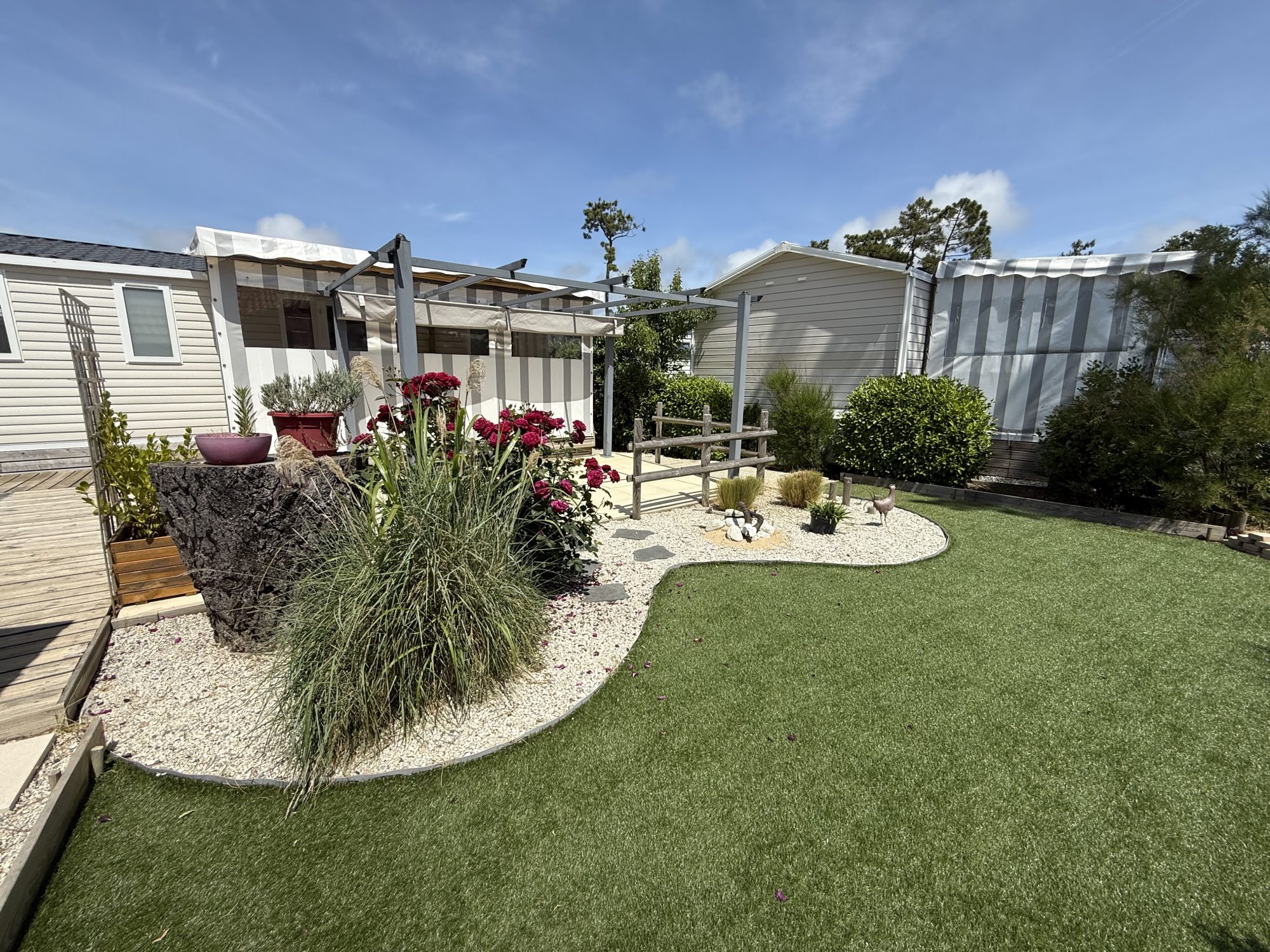 Imaginez-vous dans un lieu où le confort rencontre la sérénité, entre nature et bord de mer. Cette résidence type mobil-home vous offre un cadre de vie unique : Proximité de la plage Parc sécurisé et verdoyant, propice à la détente et au bien-être Accès facile aux commerces pour un quotidien sans souci Des installations haut de gamme : Piscine couverte Aires de jeux XXL Place de stationnement pratique et sécurisée