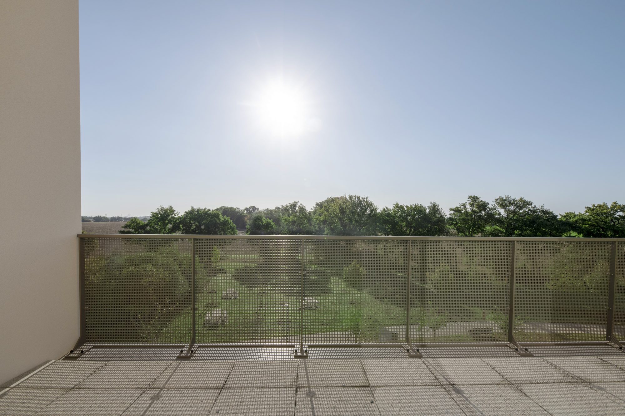 La résidence s'intègre harmonieusement dans l'environnement existant. Entouré de verdure, le traitement paysager occupe une place importante. Le coeur d'ilot, essentiellement engazonné est ponctué de chemins piétons et propose également un espace potager. Chaque logement bénéficie d'un espace extérieur généreux donnant soit sur le couer d'ilot, soit sur la campagne.