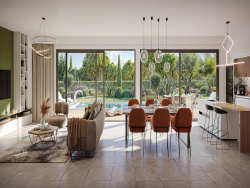 Tout le confort moderne Chaque chambre dispose de sa salle d'eau privative, et la villa permet de créer un espace de vie fluide et lumineux, pensé pour le bien-être et la fonctionnalité avec un style contemporain raffiné Piscine privée et extérieur privilégié Chaque villa s'accompagne d'une piscine individuelle, dans un jardin intime, parfaitement orienté pour profiter du climat méditerranéen en toute quiétude