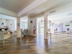 Au RDC de l'immeuble : espaces communs et services : salon, bibliothèque, salon de coiffure, restauration
