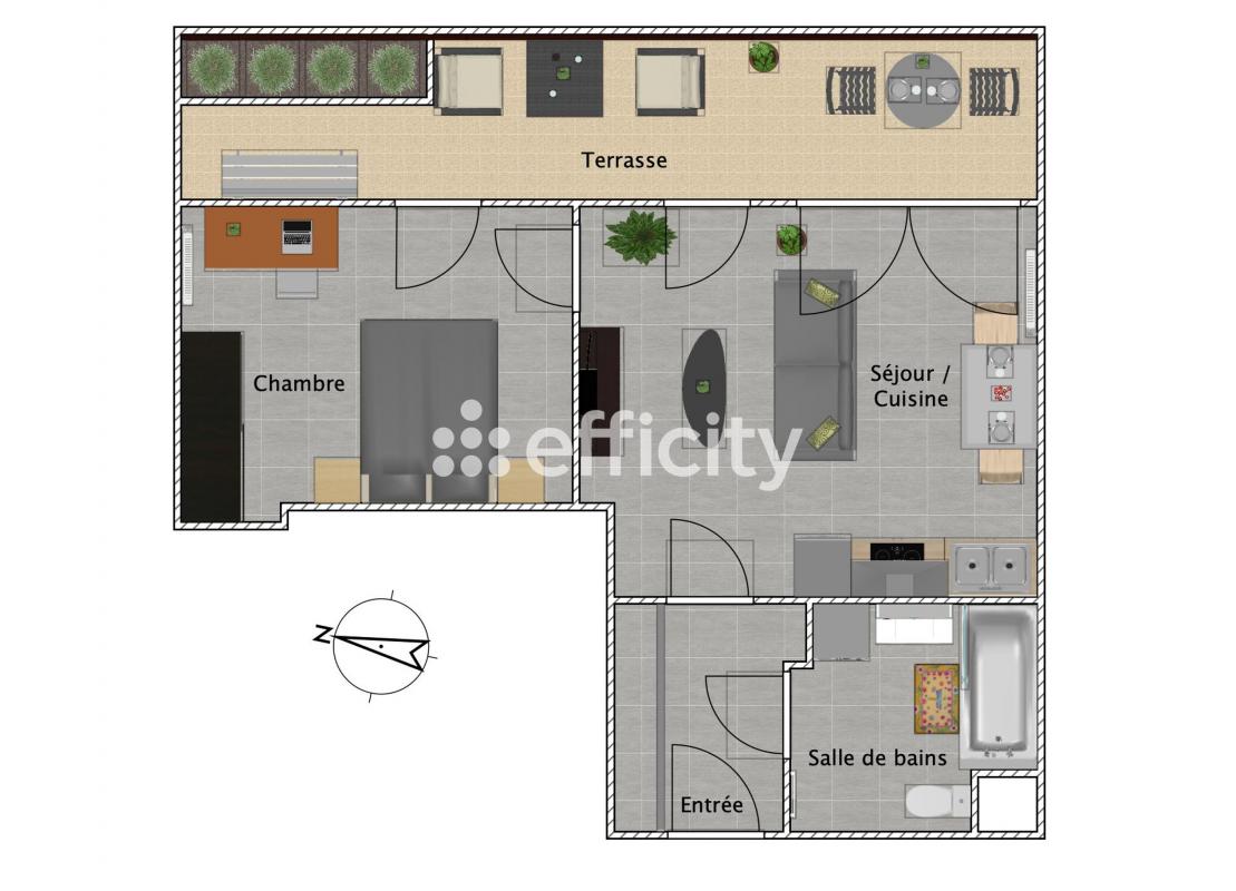 Il vous offre une entrée, un séjour donnant sur terrasse, cuisine us aménagée et équipée, 1 grande chambre avec spacieux placard, une jolie salle d'eau, WC.