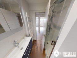 L'appartement climatisé possède 3 chambres entre 9 m² et 12 m² avec chacune leur placard de rangement, une salle d'eau et un WC séparé.