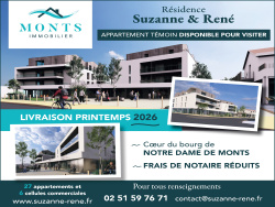 Bénéficiez d'un emplacement privilégié, votre future résidence 'SUZANNE & RENÉ' au coeur du bourg de NOTRE DAME DE MONTS à quelques pas des commerces, 600 mètres de la forêt domaniale et à 1000 mètres de la plage. La copropriété est composée de 27 appartements et de 6 cellules commerciales. Chaque logement bénéficie au minimum d'une place de parking privative et en sous-sol d'une cave privative. Local à vélos commun. Résidence répondant aux normes RT 2012. BATIMENT A et B : Livraison 2ème trimestre 2026. CHANTIER EN COURS. FRAIS DE NOTAIRE REDUITS. LE PLUS : AUCUN APPEL DE FONDS, LE PAIEMENT EST LE JOUR DE LA SIGNATURE AUTHENTIQUE ! Pour tous renseignements complémentaires, contactez Teddy Massé chez MONTS IMMOBILIER. MONTS IMMOBILIER : UN ENGAGEMENT DANS LA CONFIANCE