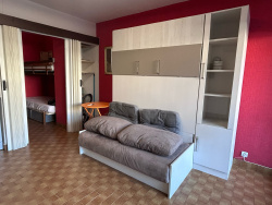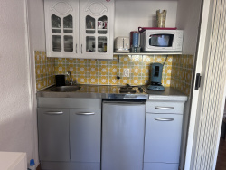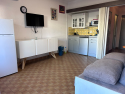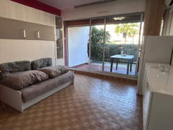 EXCLUSIVITÉ PORT CAMARGUE - SECTEUR PLAGE NORD Dans une résidence située à 200 m de la plage et à 100 m des commerces et du port de plaisance. Studio cabine en rez-de-chaussée surélevé. Un agréable extérieur d'environ 14 m2 exposé Nord-Ouest. A l'intérieur vous disposez d'une cabine à l'entrée pour lits superposés, une salle d'eau, un WC séparé et un séjour avec cuisine comprenant un canapé lit escamotable. Climatisation réversible recemment installée. Vendu meublé. Parking public gratuit devant la résidence. Bien soumis au statut juridique de la copropriété.