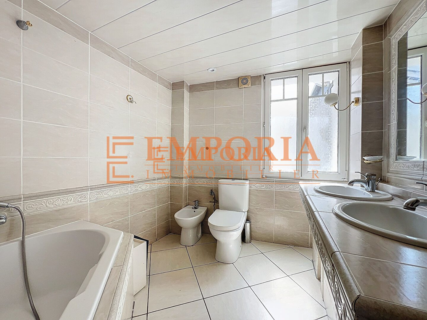 A l'étage, de 3 chambres et d'une salle d'eau avec douche (bac extra plat), sèche serviette, 2 vasques, d'un WC séparé.