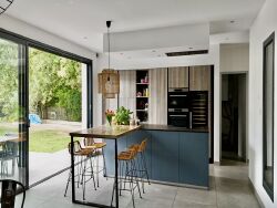 La maison se compose d'un Séjour-cuisine de 82m², une arrière cuisine de 11m², une suite parentale de 26m² comprenant son dressing et sa salle d'eau avec WC, 2 autres chambres de 12m², seconde salle de bain et WC indépendant, bureau ouvert sur séjour, garage carrelé de 21m² avec porte motorisée de 3m.