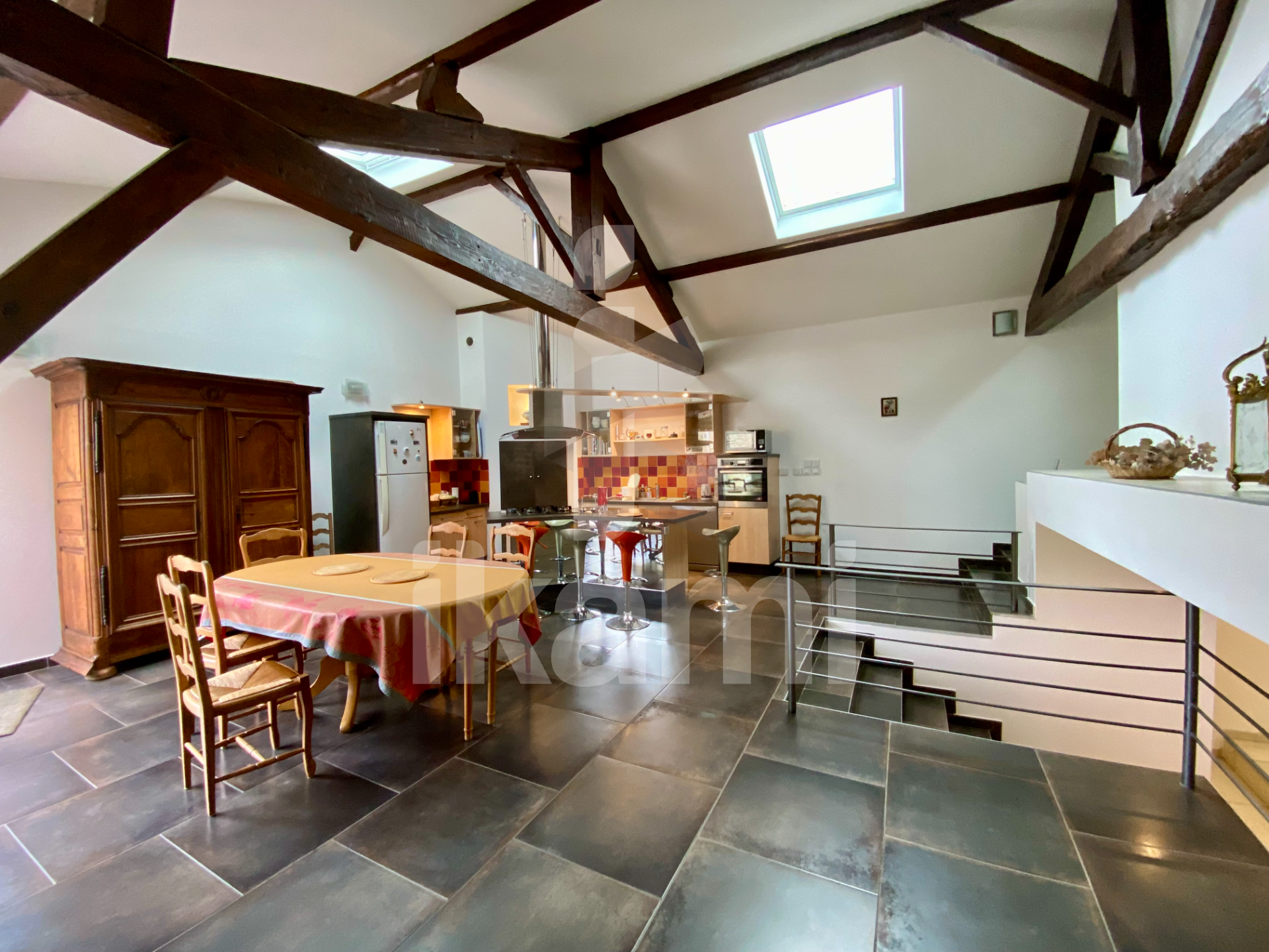 En plein coeur de Romans sur Isère, cette maison au style loft se cache derrière un portail qui ne laisse rien deviner. Une adresse centrale, mais une intimité totale : il faut franchir l'entrée pour découvrir un espace de vie atypique et surprenant. Ses volumes ouverts, sa luminosité naturelle et son caractère singulier offrent un lieu de vie rare sur le marché. Dès l'entrée, le charme opère : volumes généreux, poutres apparentes, mur en pierre et ce mélange subtil d'industriel et de chaleur qui donne à l'ensemble une identité unique. La maison s'organise avec fluidité sur le rez de chaussée et deux niveaux, reliés par quelques marchent qui rythmes agréablement la circulation. Au premier étage l'espace de vie lumineux et généreux de plus de 80 m2 se compose d'un vaste séjour cuisine de plus de 45 m2 , qui mène à un salon cocooning de plus de 40 m2 sublimé par sa pierre apparente, tous deux s'ouvrent sur une terrasse de 20 m2 exposée Est, idéale pour prolonger les moments du quotidien en extérieur. Atypique et parfaitement adapté au style loft le volume nuit propose deux chambres spacieuses climatisées, chacune avec sa salle d'eau privative, et l'une bénéficie d'une terrasse privative plein sud. Côté praticité, une buanderie fonctionnelle à disposition. À mi-étage un pôle modulable peut accueillir un vaste bureau avec de nombreux rangements idéal pour le télétravail . Le rez de chaussée abrite un double garage carrelé de 60 m2 un essentiel en centre ville, offrant une liaison fluide vers les pièces de vie. Au même niveau un espace indépendant doté d'une cuisine , d'un salon et d'une chambre avec sa salle d'eau privative .Un wc parfait l'ensemble . Un réel atout pour accueillir famille ou développer une activité autonome . Aucun travaux à prévoir pour cette maison atypique, parfaitement entretenue et très performante énergétiquement (B / A) : panneaux photovoltaiques avec auto consommation, chauffe-eau solaire, pompe à chaleur, chauffage au sol pièces de vie, radiateurs dans les chambres et rez de chaussée, menuiseries PVC double vitrage, volets électriques. Un bien rare, atypique et chaleureux alliant loft et confort moderne, au coeur de la ville mais dans un cadre intimiste et préservé. Une visite s'impose pour découvrir cette maison unique, accessible uniquement après le portail discret . - Honoraires charge Vendeur - DPE : Consommation B (75) GES A (2) EI. MURIELLE JEAN RSAC DE ROMANS SUR ISERE No 951.769.231 CONTACT: 06 87 99 80 61 MAIL m.jean@groupementimmo.net