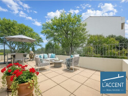 Cet appartement présente une situation géographique ainsi qu'une vue panoramique sans vis à vis exceptionnelles. L'ensemble des fenêtres de la pièce de vie donnent à cet espace une sensation de flotter au dessus des toits du centre ville de Nîmes.
