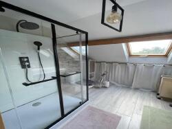 La partie nuit est composée de 2 très grandes chambres ( potentiellement 3 ) avec coin dressing, d'une salle d'eau avec douche à l'italienne du plus belle effet, d'un meuble vasque et d'un WC.