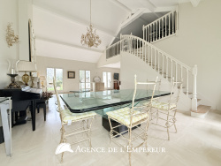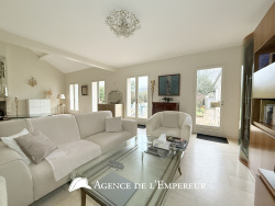 L'agence de l'Empereur vous présente cette rare maison de 210 m2 habitables, construite de plain-pied sur une parcelle de terrain d'environ 880 m2. Une belle adresse, à deux pas du bois de Saint Cucufa et de très bons scolaires publics et privés. Une entrée spacieuse dessert la réception de 68 m2 avec un séjour cathédrale, offrant une belle luminosité sur tout cet espace à vivre, qui se prolonge sur une terrasse de 50 m2 et le jardin paysager sans aucun vis à vis. La cuisine équipée, indépendante, profite également d'une ouverture directe vers le jardin. Cinq chambres dont une suite parentale avec salle de bains et dressing plus trois salles de douche qui desservent les quatre autres chambres. Une mezzanine de 28 m2 ajoute à la maison un bel espace de loisir et de détente ou chambre avec salle de douche pour recevoir les amis ou la famille de passage. La cave de 40 m2 sera très pratique pour tout le rangement et pour créer un bel espace buanderie. En fond de parcelle, complètement indépendant, un atelier de plus de 26 m2 avec une mezzanine de 8 m2. Les stationnements pour les voitures sont assurés par un garage attenant à la maison, très facile d'accès. Cette élégante maison présente de nombreux points intéressants comme toutes les pièces de plain-pied vers l'extérieur, le jardin bien orienté et sans vis-à-vis, une fluidité des espaces ainsi que la grande réception. Nous sommes à votre disposition pour vous faire découvrir cette jolie maison.