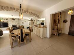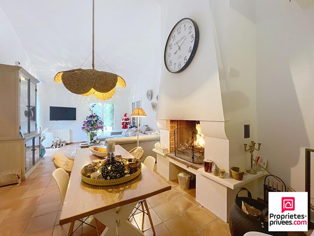 Laissez vous charmer par cette très belle villa individuelle de plain-pied de 163 m² construite en 1990. Sise sur un terrain de 2500 m² dans un environnement calme et verdoyant, elle est parfaitement exposée avec une vue imprenable sur la campagne et les vignes d'un excellent vignoble provençal, bio. Avec quatre chambres, une salle de bain (baignoire et douche) deux toilettes et un cellier/buanderie, cette maison est idéale pour une famille. Composée d'un séjour climatisé et spacieux de 48 m², vous pourrez vous détendre avec aisance et quiétude. La cuisine rendue indépendante par une jolie verrière est aménagée et parfaitement équipée notamment par son joli piano. Elle confère un espace de travail agréable pour les amateurs de gastronomie.