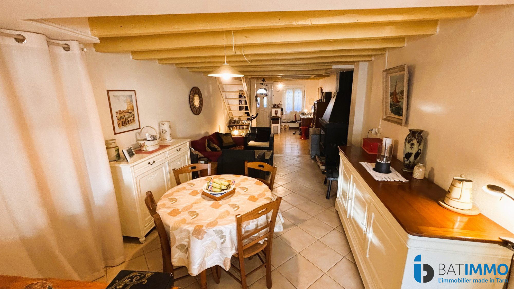 Jean-Baptiste Galud, Conseiller Immobilier Indépendant, vous propose de découvrir, à Saint Benoit de Carmaux, proche des commodités (école, collège, lycée) cette maison des années 60 qui pourra convenir à une famille en quête de sa première résidence principale, mais également pour un investissement locatif. Elle se compose, au rez-de-chaussée, d'une entrée distribuant un coin sanitaires avec WC et salle d'eau, et la pièce à vivre. Traversante et donnant sur une terrasse orientée à l'est, elle se compose d'un coin salon, chauffé par un poele à granules, un coin séjour, et une cuisine. Attenant à la cuisine, vous trouverez un cellier et une cave. Au premier étage, vous trouverez 3 chambres (12, 13 et 13 m2), un bureau (7.10m2) et une ancienne salle d'eau. La charpente est en très bon état (elle a été traité contre les termites il y'a quelques années), la plupart des menuiseries sont en double vitrage, et sa disposition améne à la penser ouverte sur l'extérieur. Elle nécessitera bien entendu quelques travaux, mais son potentiel peut en faire une maison très agréable, et / ou un investissement locatif de qualité ! On va la voir ? Cette annonce vous est proposée par LAUTREC Sabine - EI - NoRSAC: 894 626 431, Enregistré à Greffe du tribunal de commerce de Albi - Annonce rédigée et publiée par un Agent Mandataire -