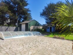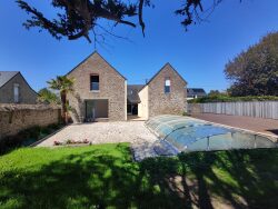 SAINT BRIAC sur MER - Ensemble immobilier avec une maison, deux appartements T3, deux garages et piscine. La maison comprenant : Séjour salon avec cheminée (insert), cuisine aménagée et équipée, arrière cuisine, une pièce (salle de jeux), 3 chambres dont une avec salle d'eau, petit dressing et wc, dégagement, salle de bains avec douche, wc, dégagement accès étage où vous trouverez 2 chambres, wc. Attenant à la maison, un garage avec 2 appartements T3 comprenant chacun : une pièce de vie avec coin cuisine, 2 couchages, salle d'eau avec wc, ainsi que 2 celliers dans le garage. Une piscine (8m / 4m), un deuxième garage et un abri de jardin. Une terrasse exposée Sud. le tout sur un terrain de 903 m² clos. Cet ensemble se situe dans un secteur recherché, calme et agréable. A quelques minutes des commerces et des plages.