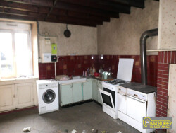 Maison de campagne, mitoyenne d'un côté, comprenant Au RDC : entrée, pièce de vie avec cheminée, dégagement, salle d'eau-wc, cave Au 1er étage : 2 chambres, 3 pièces dont 1 avec wc Au 2éme étage : grenier aménageable Four à pain, dépendances, bâtiment de stockage