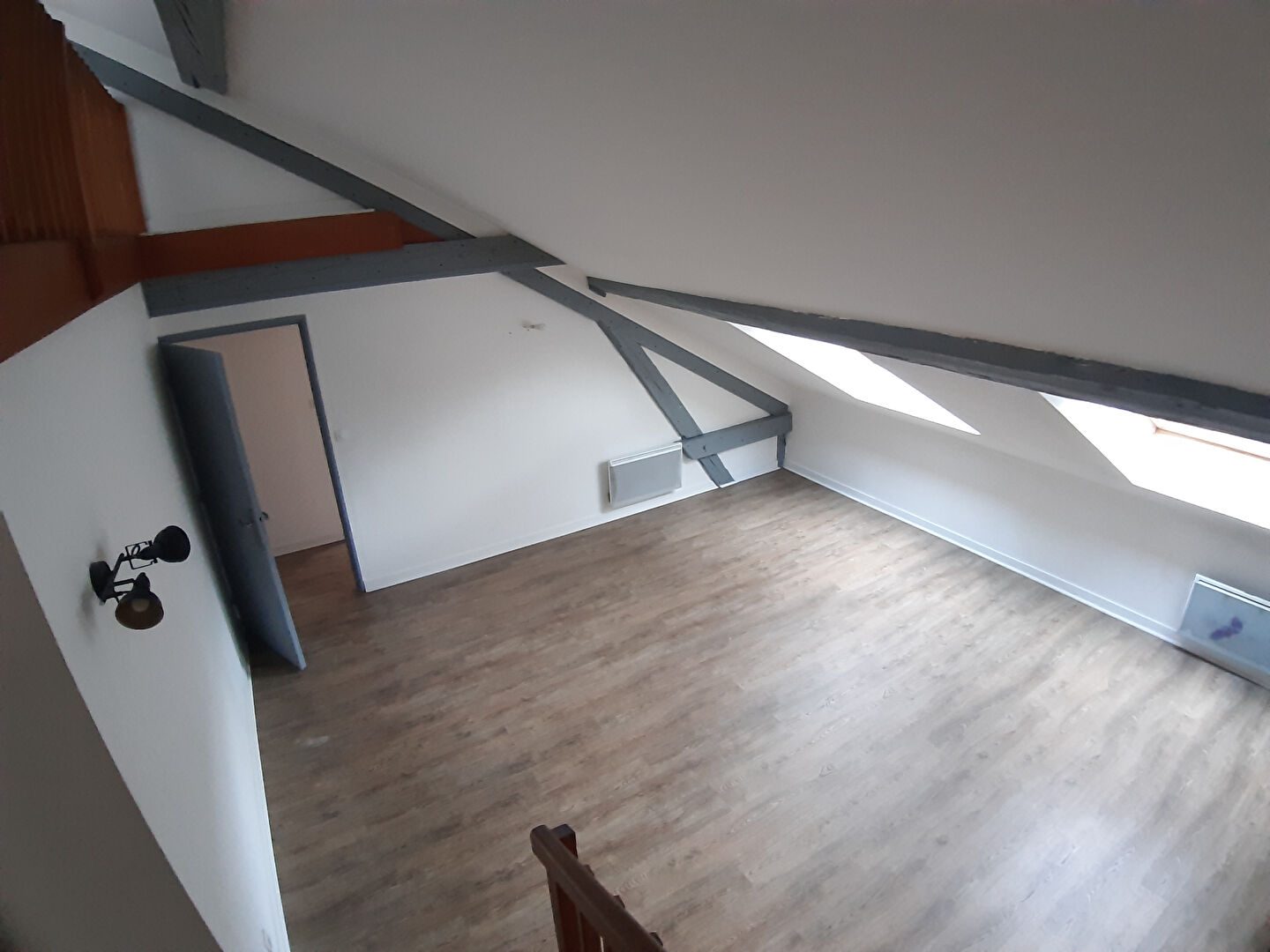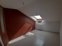 SAINT DIE, proche du coeur du ville, au 2ième et dernier étage sans ascenseur, appartement mansardé en très bon état comprenant cuisine aménagée et semi équipée (four, plaque de cuisson, hotte) ouverte sur pièce de vie, dégagement avec placards, une chambre, 2 pièces, salle de bain avec baignoire balnéo et douche et WC indépendants Chauffage individuel électrique Disponibilité immédiate
