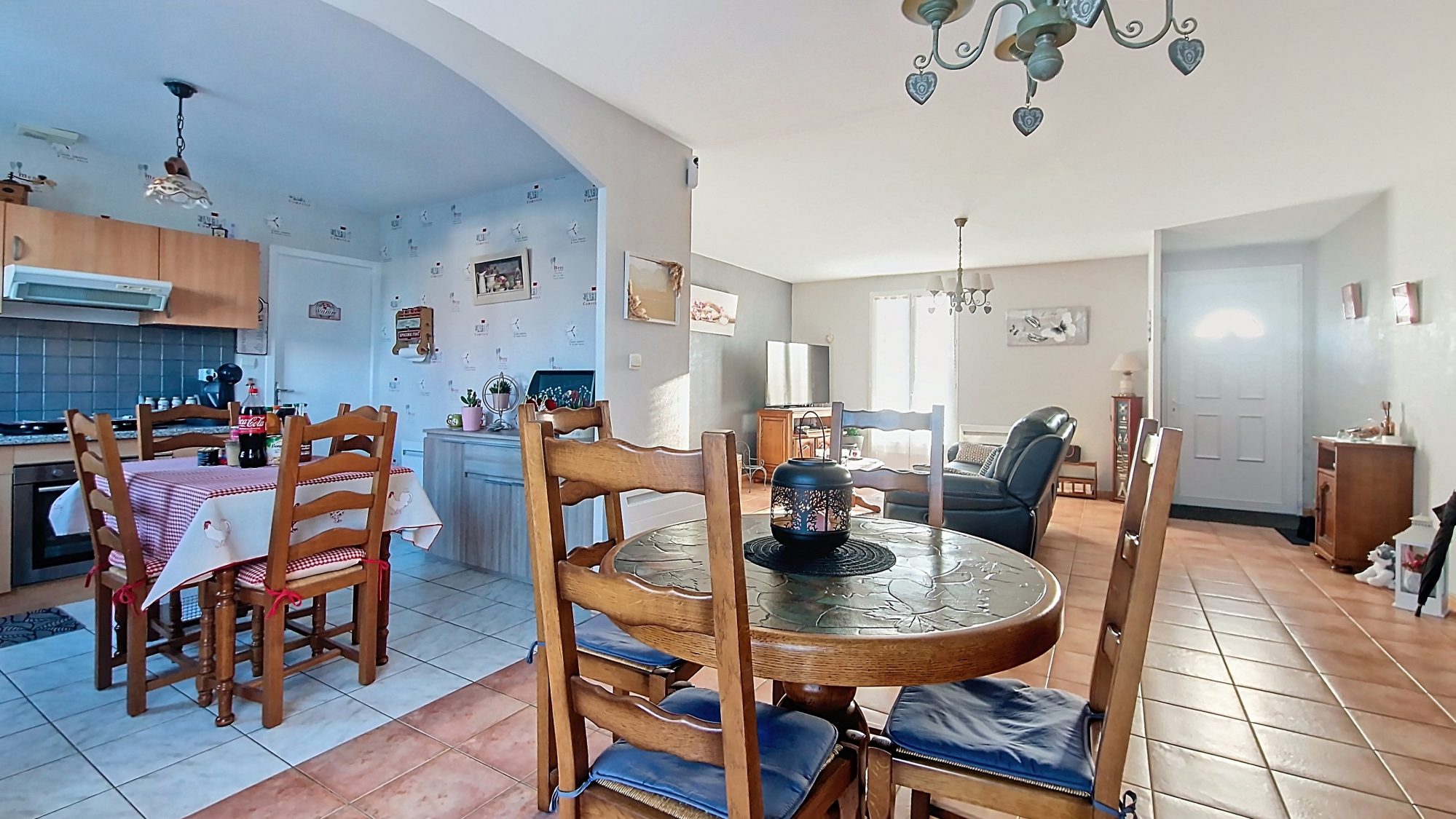 Vivable de plain-pied, cette maison de 110 m² répond parfaitement aux attentes des personnes en quête de praticité et d'accessibilité, tout comme aux familles souhaitant une maison fonctionnelle et évolutive. - Au rez-de-chaussée vous découvrirez une entrée, un séjour spacieux et lumineux avec cheminée, une cuisine aménagée avec accès direct à la terrasse, un cellier, deux chambres avec accès au jardin ainsi qu'une salle d'eau et un WC indépendant. - À l'étage, vous disposerez de deux chambres supplémentaires ainsi que d'une seconde salle d'eau avec WC.