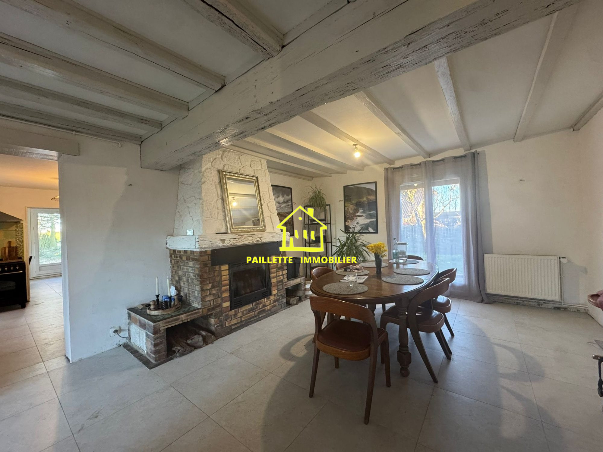 Au rez-de-chaussée : Entrée Séjour de 35m² avec cheminée insert Cuisine aménagée Salon de 24m² Salle de douche avec WC