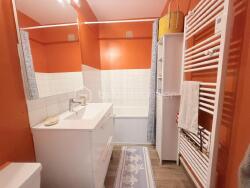 La salle de bains a elle aussi été modernisée : meuble vasque contemporain, baignoire, sèche-serviettes, le tout complété par le remplacement du chauffe-eau, des radiateurs et de la robinetterie. La résidence est soignée, sécurisée par digicode, avec des charges de copropriété maîtrisées d'environ 484 euros par an.