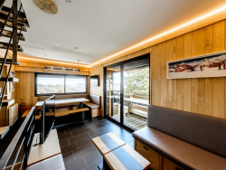 Le niveau inférieur propose deux chambres supplémentaires, chacune avec sa propre salle d'eau, assurant un confort optimal pour recevoir famille et amis en toute indépendance . Enfin, Le Chelet Lodge se distingue par ses prestations soignées : un ski-room fonctionnel, des volumes repensés dans un esprit résolument design et un élégant escalier de style industriel qui apporte une touche contemporaine à l'ensemble.