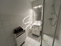 La salle d'eau est dotée d'une cabine de douche, d'un meuble vasque, d'un miroir. Un Wc.