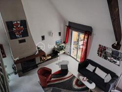 À l'étage, l'entrée dessert un WC indépendant et s'ouvre sur une superbe pièce de vie composée d'un séjour et d'un salon, sublimée par une cheminée avec insert et prolongée par un accès direct à la terrasse. La cuisine ouverte, entièrement aménagée et équipée, s'intègre harmonieusement à l'ensemble, créant un lieu de réception chaleureux et convivial.