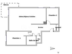 L'appartement comprend une entrée, un grand séjour avec cuisine ouverte de 28 m² ouvrant sur un balcon de 9m² orienté Sud, 2 chambres, 1 salle de bains et des WC séparés.
