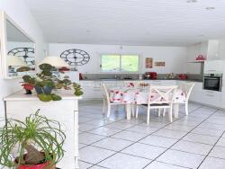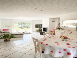 De plain-pied, elle offre une belle pièce de vie lumineuse avec salon, salle à manger, cuisine ouverte et cellier.