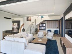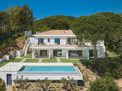 Située dans le domaine du Grand Souleyas quartier de la croisette à Sainte-Maxime, Luxueuse adresse pour cette villa de prestige bénéficiant de prestations haut de gamme très qualitatives, de généreux volumes et d'une vue mer dominante et imprennable sur le Golfe de Saint-Tropez. La distribution intérieure a été conçue selon les exigences actuelles de cette gamme de biens. Villa dotée d'un ascenseur. La composition est la suivante : Au rez de chaussée, un vaste hall d'entrée avec ascenseur et escalier descendant, trois chambres en suites avec salles de douches et wc, dont deux ouvrants sur une terrasse d'environ 85m2 avec espace jacuzzi et salon détente, un grand garage. Au rez-de-jardin : un hall de réception ascenseur et escalier, un water-closet invités et vestibule, un espace bureau, un vaste salon - salle à manger avec cheminée traversante, une cuisine à l'américaine dans le prolongement avec cave à vin conditionnée, un salon de dégustation, une arrière cuisine, un local technique et buanderie, une chambre no4 de Maître avec dressing, salle de bains et douche, wc, un coin bureau. Pour le coté détente du RDJ : une piscine à débordement située dans le prolongement du salon, agrémentée de larges plages bains de soleil. Pour compléter cet espace vient s'ajouter un salon d'été sous terrasse couverte ainsi qu'une cuisine d'été avec coin repas dans le prolongement pour une surface totale de 75m2 environ. Cet espace extérieur assure une ambiance farniente garantie, le terrain est complanté d'essences méditerranéennes et tropicales avec arrosage automatique. Dossier complémentaire avec plans et vidéo du projet sur demande.