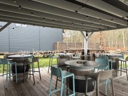 Ce local d'environ 100m² se compose, d'un espace client avec bar d'environ 60m², d'une cuisine, de sanitaires, et de diverses salles de stockages. En complément une terrasse couverte d'environ 40m², et un parking de 300m².
