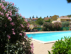 Dans le cadre paisible d'une résidence avec piscine à 10 minutes à pied de la mer, adorable maison club, bon compromis entre maison et appartement, au calme, composée d'un bel espace jour ouvert sur une grande terrasse ensoleillée. A l'étage 2 petites chambres et une salle d'eau. Propre et bien aménagée elle sera un nid douillet pour les vacances ou jeune couple en principal. Une place privative complète ce bien prêt à être habité. La résidence est sécurisée et offre également nombreuses place de parking visiteurs. Le plus des faibles charges de copropriété.