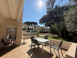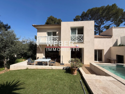 Entre la plage de Portissol et la plage de Beaucours, villa neuve de 122 m2 entièrement climatisée offrant une très belle pièce de vie de 54 m2 avec cuisine équipée, baies vitrées à galandage sur terrasse et jardin. 4 chambres dont une 1 chambre en rdc à cloisonner avec salle d'eau, et à l'étage 3 chambres dont 1 avec salle d'eau. Les deux autres chambres se partagent une salle de bains. Balcon avec vue piscine et jardin. Garage à motos et vélos. Local technique, stationnement sur terrain de 400 m2 clos et arboré avec piscine traditionnelle carrelée.