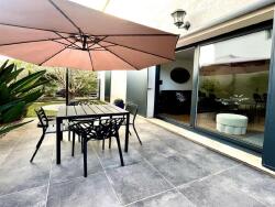 Vous profitez d'une terrasse de 12,50 m2 et d'un jardin de 70 m2, joliment arboré avec un olivier et des plantes exotiques, créant un véritable havre de paix à l'abris des regards.