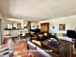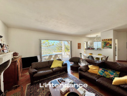 Dans un quartier résidentiel, en position dominante avec vue panoramique sur la ville et ses environs, proximité du centre ville à pieds, belle villa de construction traditionnelle de 1988. La superficie, d'environ 145 m2 est répartie sur 2 niveaux. Au premier niveau, une entrée, un wc, une grande buanderie, une cuisine américaine donnant sur un double séjour avec cheminée et ouvrant sur une vaste terrasse dominant l'espace piscine. A l'étage, 4 chambres, 2 SDB, wc. L'ensemble est implanté sur une parcelle de 1120 m2 accrochée à la colline plantée d'essences méditerranéennes. Un garage et un emplacement de parking viennent compléter cette villa.