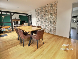 SANVIC Ce bien est actuellement sous compromis de vente par Arcade Immo. Cette spacieuse maison familiale offre de beaux volumes et une vie de plain-pied, idéale pour une famille. Elle se compose au rez-de-chaussée d'un hall d'entrée, d'un vaste séjour-salon lumineux de 47 m2 avec cheminée insert, d'une cuisine aménagée récente avec coin repas (16 m2), d'une chambre, d'une salle de douches et de WC indépendants. À l'étage, vous découvrirez trois chambres, dont une suite parentale avec dressing, ainsi qu'une salle de bains avec douche et des WC. Un sous-sol complet vient compléter ce bien, comprenant un garage pour deux voitures, une salle de jeux de 30 m2 et un atelier. Maison idéale pour une famille à la recherche de confort, d'espace et de fonctionnalité. « Les informations sur les risques auxquels ce bien est exposé sont disponibles sur le site Géorisques : www.georisques.gouv.fr »