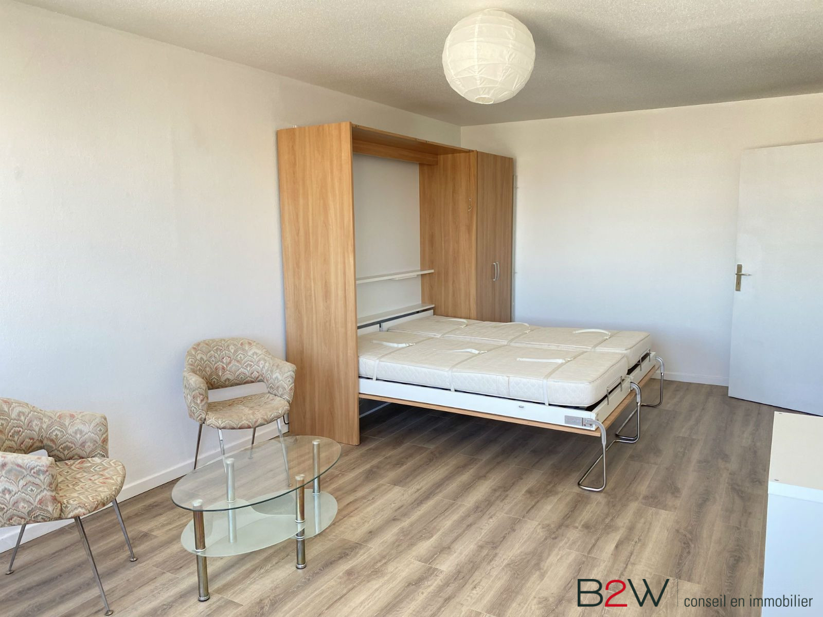 Appartement situé au 1er étage avec ascenseur, comprenant une entrée avec placard, une cuisine équipée ouverte sur le séjour de 22,83 m2, une chambre, une salle d'eau et un WC séparé. Un balcon de 9,94 m2 et une place de parking viennent compléter ce bien. Logement disponible le 01/03/2026.