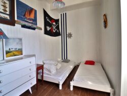 Secteur Plages, maison ancienne offrant au RDC une pièce à vivre avec cuisine ouverte, un dégagement donnant sur une salle de douches et un wc. Au 1er étage : 2 chambres, salle de bains avec wc. Au 2ème étage, en sous-combles, un pallier, et 2 chambres. Une cour sur l'arrière clos de murs avec un appentis.