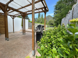 À l'extérieur, un beau jardin d'environ 500m2 entièrement cloturé avec terrasse couverte et vue sur le terril.