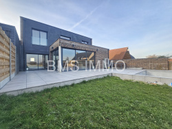 Exlusivité - Nous avons le plaisir de vous proposer à la vente, cette magnifique maison de 167m2 habitables, construite en 2021, située au calme. Au rez de chaussée, vous découvriez une entrée cathédrale avec rangements et WC, donnant sur une spacieuse et très lumineuse pièce de vie de 65m2 avec sa cuisine entièrement équipée. Vous trouverez également une suite parentale comprenant chambre, dressing et salle de douches et un cellier/buanderie A l'étage, une mezzanine avec son bureau dessert 3 belles chambres, dont une avec sa salle de douches et une grande salle de bains avec douche, baignoire et WC. Côté extérieur, une grande terrasse, un jardin clos bien exposé avec une vue dégagée et une piscine. Enfin un garage et du stationnement privatif complètent ce bien de qualité. Les + : garanties décennales, maison peu énergivore, aucun travaux à prévoir