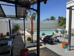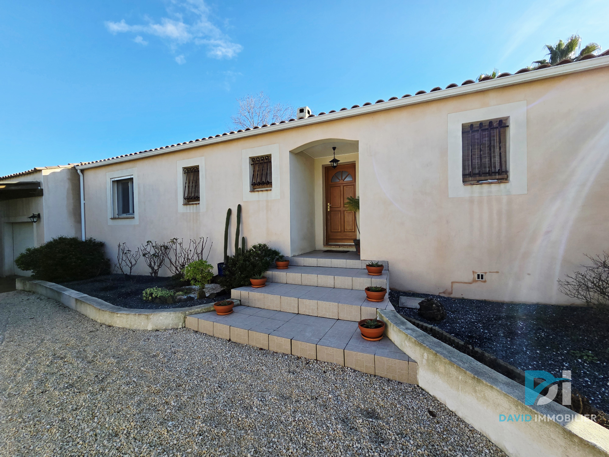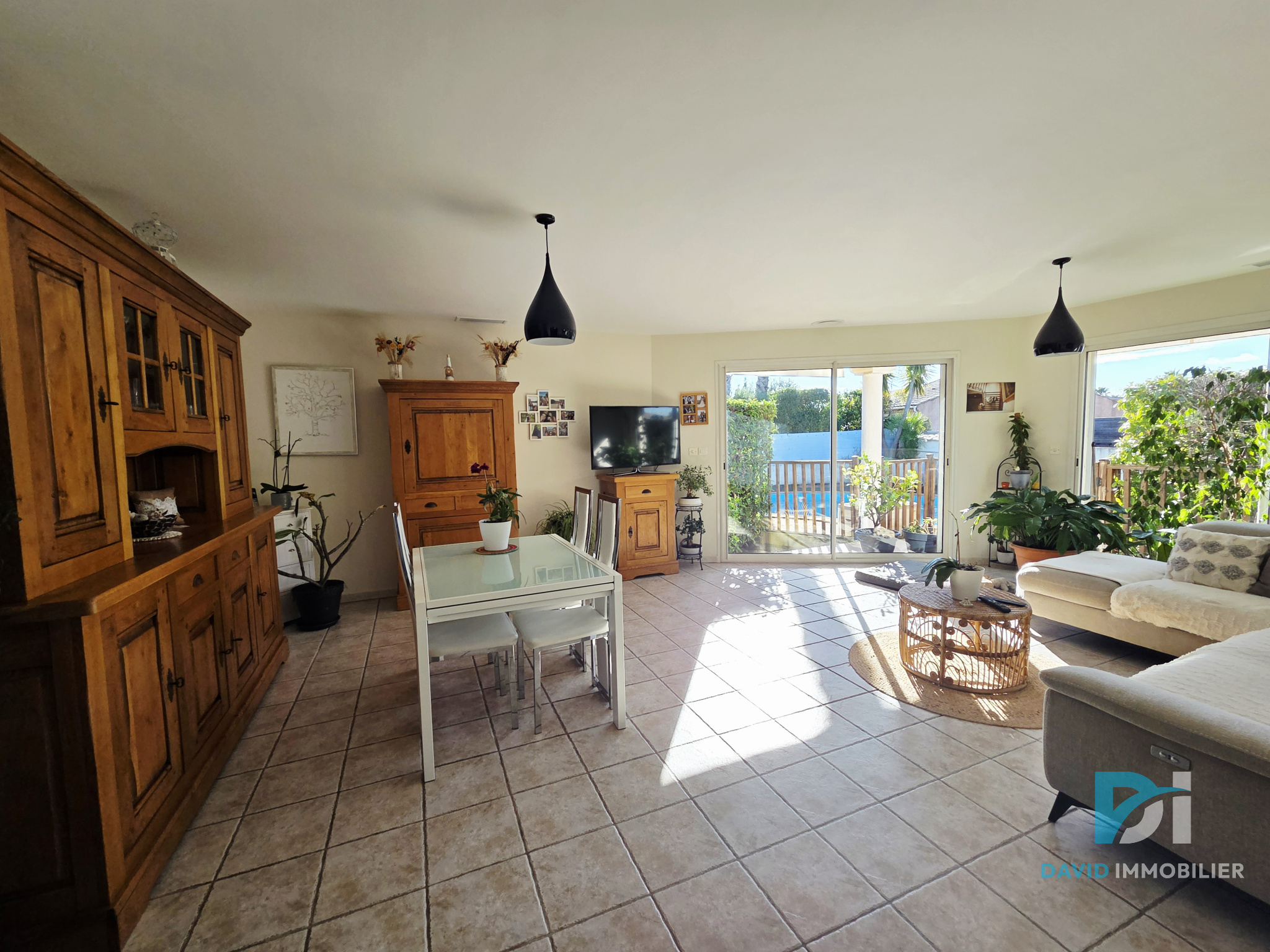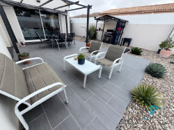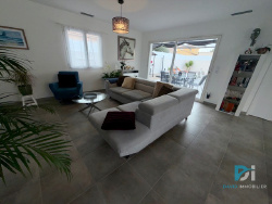 Superbe villa moderne de plain-pied aux prestations actuelles et soignées. Elle offre un bel espace de vie lumineux comprenant séjour, salon et cuisine ouverte équipée, idéal pour partager des moments conviviaux en famille ou entre amis. Côté nuit, vous découvrirez trois chambres, dont une agréable suite parentale avec douche, WC et dressing, ainsi qu'une salle d'eau indépendante, un WC supplémentaire et un garage. Implantée sur un terrain de 515 m2, la propriété bénéficie d'un bel extérieur avec piscine, parfait pour profiter pleinement des beaux jours en toute intimité. Prestations modernes et confort optimal : climatisation réversible gainable, volets roulants aluminium électriques, portail électrique... Un bien clé en main alliant confort, modernité et qualité de vie. À découvrir sans tarder ! Les informations sur les risques auxquels ce bien est exposé sont disponibles sur le site Géorisques : www.georisques.gouv.fr