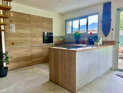 Très belle maison contemporaine de 2021, offrant prés de 160 m² de surface utile, sur un terrain plat arboré de prêt de 650 m2. Cette récente villa est au coeur d'un quartier très recherché de Sevrier pour son calme et son côté nature. Orientations principales Est et Sud, l'entrée se fait côté Ouest avec courette pour y stationner un véhicule. Un grand garage + un mazot garantissent une capacité pour de de nombreux rangements (vélos, matériel de jardins etc) Cette maison contemporaine révèle une réalisation soignée avec de belles prestations mélangeant le bois et la pierre (grands carrelages et faïences, chauffage PAC Air-Eau avec plancher chauffant, panneaux solaires, domotique, vidéo surveillance des extérieurs, poêle à bois etc). Au Rez-de-chaussée : hall d'entrée ouvre sur le salon très lumineux garce à ses baies nombreuses vitrées, une cuisine moderne aux matériaux de qualité, et un coin cosy avec un poêle à bois. Un large Cellier /buanderie, un wc indépendant. Un grand garage (+de 25 m²) attenant permet d'entrée directement dans la maison. A l'étage un superbe escalier bois contemporain mène aux 4 chambres dont une suite parentale avec salle de bain et dressing, plus un bureau (pouvant aussi faire office d'une 5eme chambre, enfant), et 3 autres spacieuses chambres avec deux salles de douche. Un wc indépendant. L'ensemble offre une belle exposition et vue montagnes (Dents de Lanfon/Tournette), un beau jardin avec une terrasse accueillant barbecue et déjeuner d'été, jouxtant un jacuzzi et son bain de nage (escamotable) Nous sommes ici dans un environnement préservé, tout en bénéficiant de la proximité des commodités, et ce à pied !