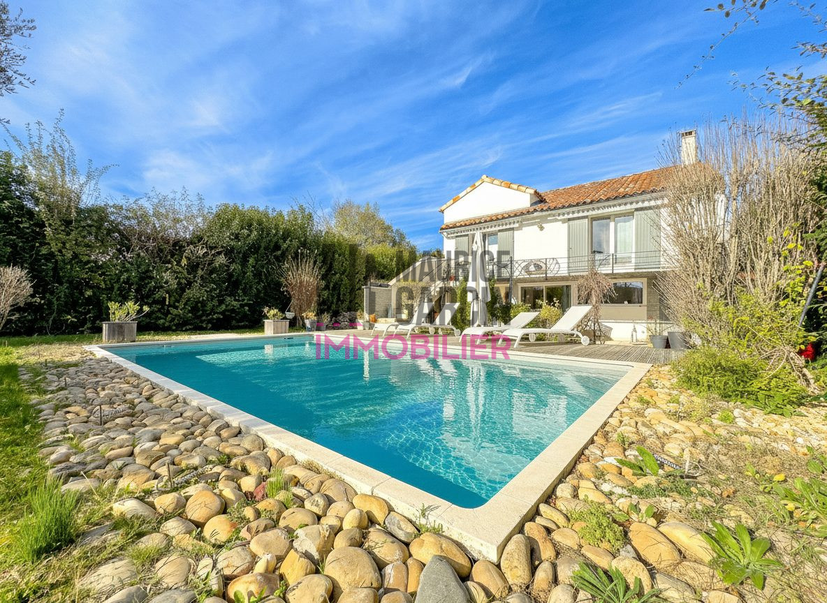 Extérieurs : Un jardin privé de 600 m², parfaitement entretenu, avec piscine, espace détente et coin barbecue pour des moments de convivialité en famille ou entre amis.