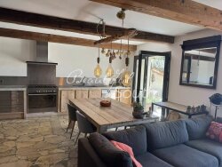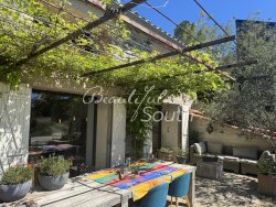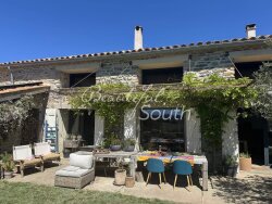Dans un environnement hors du temps, sur une parcelle de 2.5 hectares ancrée dans les vignes, bien atypique alliant habilement charme de l?ancien et technologies durables. Cette ancienne bergerie a été entièrement rénovée avec beaucoup de goût et des matériaux nobles et dispose d?une surface habitable de 317m². La maison offre 5 suites complètes (chambre et salle d?eau), un magnifique salon de 56m² avec cheminée, une large bibliothèque/ou deuxième salon de plus de 38m² avec poêle à bois, une grande cuisine de 40m² et une arrière-cuisine de près de 25m². On apprécie particulièrement la luminosité dans les différentes pièces de la maison grâce aux larges baies-vitrées et aux nombreuses ouvertures. C?est avec harmonie que cette bergerie a été repensée à merveille en associant différents matériaux : le bois avec les poutres apparentes, le parquet et le mobilier sur mesure, la cheminée et le poêle à bois ; puis la pierre avec les marches et aménagements autour de la piscine rappelant les murs extérieurs d?origine, les vasques en pierre, etc? Le confort moderne de cette maison se démarque d?autant plus par son caractère respectueux de l?environnement et le bien-être procuré : le bassin de la piscine s?intègre parfaitement au paysage et l?eau y est filtrée de manière naturelle avec des plantes (jardin d?assainissement), des panneaux photovoltaïques fournissent l'électricité, des panneaux solaires l'eau chaude pour toute la maison. La propriété dispose de son propre puits et peut aussi collecter jusqu?à 20 000 litres d?eau de pluie. Le traitement des eaux usées se fait par phytoépuration (filtration par les plantes). Le cadre somptueux, orienté sud, aux vues imprenables sur les Corbières et le Mont Canigou, permet de profiter en toute quiétude du climat méditerranéen et du calme environnant: une piscine, des terrasses ombragées, un atelier, un abri de jardin, le tout sur une parcelle arborée en pleine nature et à seulement 1.5km du village le plus proche. Cette maison peut accueillir une grande famille ou pourrait très facilement être exploitée en activité de chambres d?hôtes tout comme un lieu de retraite privilégié pour des stages/ séminaires, etc? A 34km des plages de Leucate, 40km de Narbonne et 53km de Perpignan.