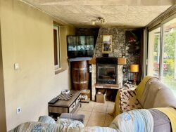 Maison d'environ 93m2 mitoyenne par le garage construite en 2002. Elle se compose d'une entrée, salle à manger, pièce de vie vitrée avec poêle à bois, cuisine séparée et équipée, 3 chambres, salle d'eau, WC. Terrasse couverte. Garage attenant. Chauffage électrique et bois ; chauffe-eau électrique. Desservie par le tout à l'égout.