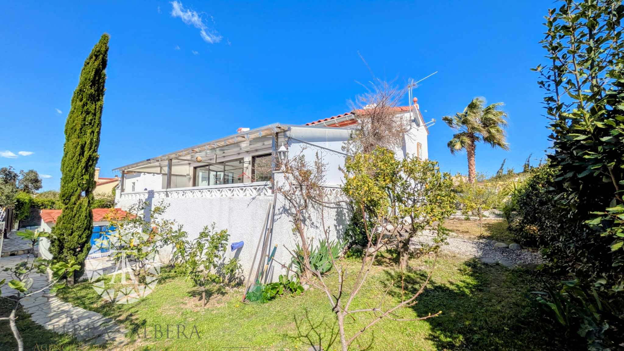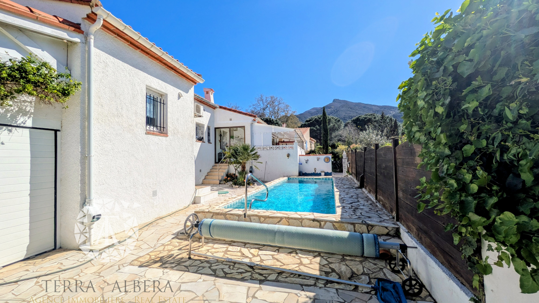 Sorède - Villa contemporaine 4 faces 4 chambres, piscine et stationnements Située dans un environnement paisible et baigné de soleil, cette belle propriété se trouve au coeur du village de Sorède, à quelques minutes des plages d'Argelès-sur-Mer et à courte distance de la frontière espagnole. Développant environ 130 m2 habitables, l'habitation propose cinq pièces, dont quatre chambres aux volumes confortables. Trois d'entre elles sont aménagées en rez-de-chaussée. Deux salles d'eau et deux toilettes complètent l'ensemble. La pièce de vie, spacieuse et lumineuse, offre près de 49 m2 et s'ouvre sur une véranda d'environ 15 m2 orientée plein sud, idéale pour profiter d'un ensoleillement optimal tout au long de l'année. Côté confort, la maison bénéficie d'un chauffage central, d'un poêle à bois pour une ambiance chaleureuse en hiver et d'une climatisation réversible. La cuisine ouverte, entièrement équipée et fonctionnelle, s'intègre harmonieusement à l'espace de vie. Construite en 2011 avec des prestations soignées, elle dispose notamment de menuiseries aluminium en double vitrage, de volets roulants motorisés et d'un raccordement à la fibre optique. Implantée sur une parcelle d'environ 453 m2, la propriété propose un agréable espace extérieur comprenant une piscine type couloir de nage (10 x 2,5 m) avec système de nage à contre-courant, un abri de jardin, une cuisine d'été ainsi qu'un coin détente aménagé. Un garage équipé d'une porte motorisée, deux emplacements de stationnement supplémentaires (dont un sécurisé par portail électrique) et une annexe attenante d'environ 18 m2 avec entrée indépendante viennent parfaire les prestations. À proximité immédiate des commerces, établissements scolaires, services médicaux et restaurants, cette maison constitue une opportunité idéale pour une résidence principale comme secondaire. Contactez Cédric CALLU, Agent commercial TERRA ALBERA (RSAC no 498 841 204 Perpignan) 06 x 86 x 91 x 14 x 03 cedric@terra-albera.com Contactez Daniel Pumarole, Agent commercial chez Terra Albera (RSAC no 445 357 544 Perpignan), au 06 x 77 x 15 x 62 x 76 ou par e-mail à l'adresse daniel@terra-albera.com Date de réalisation du diagnostic énergétique : 27/01/2026 Consommation énergie primaire : 147 kWh/m2/an Consommation énergie finale : Non communiqué Les informations sur les risques auxquels ce bien est exposé sont disponibles sur le site Géorisques : www.georisques.gouv.fr