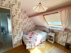 A l'étage : palier desservant 3 chambres sous combles, espace bureau, buanderie/repassage, salle de bain récente avec baignoire et douche.