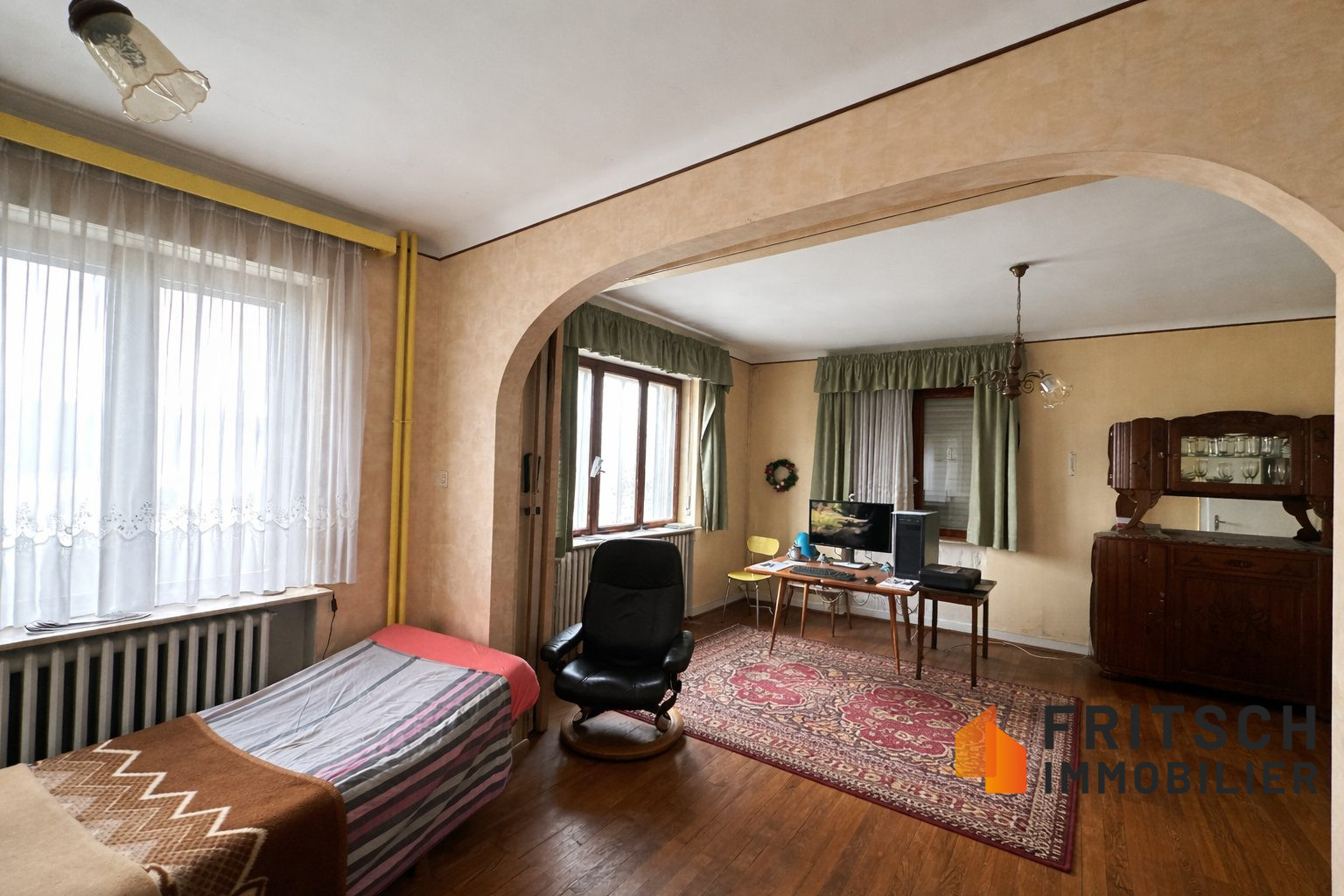 Sur 8,96 ares de terrain, propriété composée d'une agréable maison d'une surface d'environ 270 m² ainsi que d'un grand atelier d'environ 150 m² avec espace d'accueil en complément (ancienne menuiserie) et d'une grange attenante avec deux garages